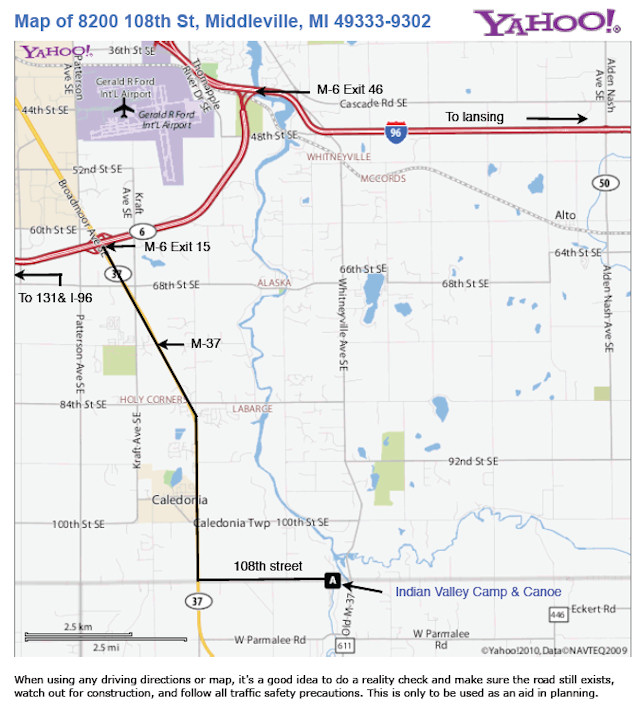 US-131 S. of Grand Rapids, E. on 100th St. to Patterson, go S. 1/2 Mi. to 108th St., E. 4 Mi. Follow signs. I-96 E. of Grand Rapids, Exit 52 (M-50), S. 4-1/2 Mi. to 84th St., W. 4 Mi. to Whitneyville Rd., left 3 Mi. to 108th St., right 1/4 Mi.